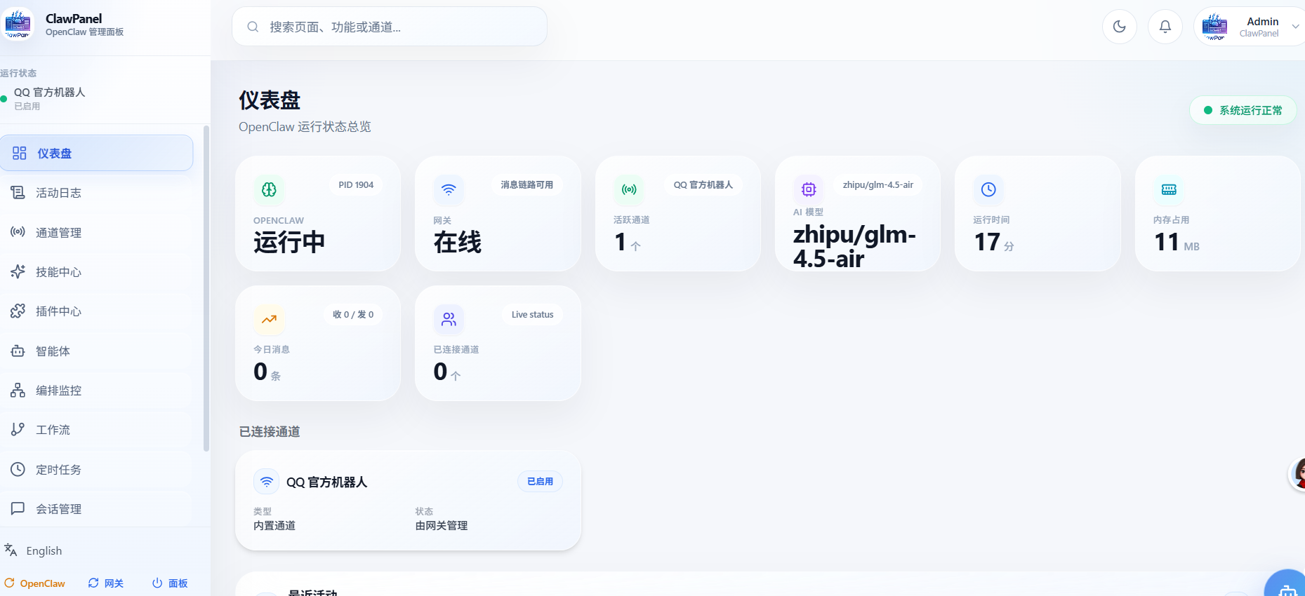 项目地址:https://github.com/zhaoxinyi02/ClawPanel