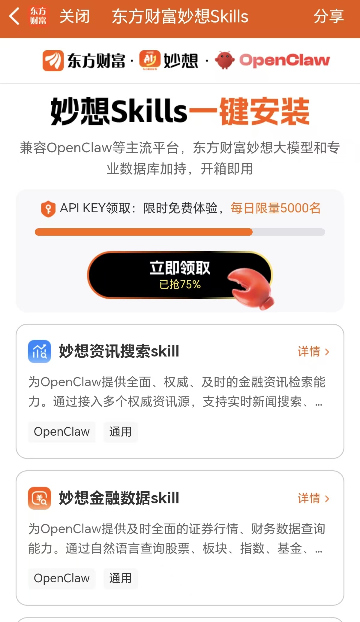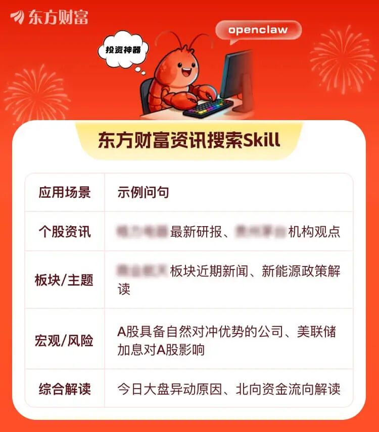 东方财富 Skills 上线!给你的 AI 龙虾装上金融投资 “超能力”